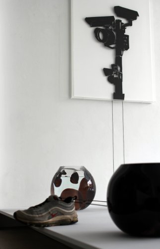 2011, Metall Cutout, mundgeblasenes Glas, Schuh, Schnur, Mdf, Detail.