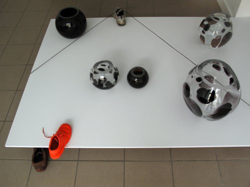 2011, mundgeblasenes Glas, Schuhe, Schnur, Mdf, Detail.