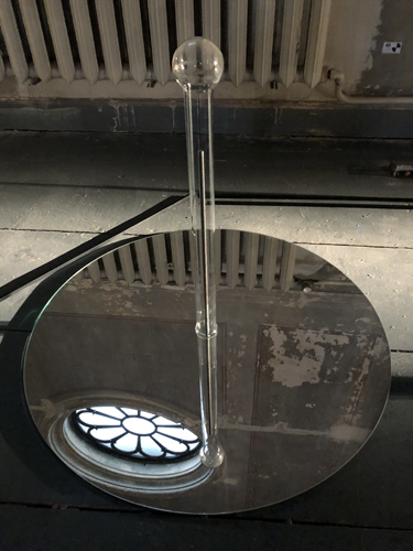 2017, Raumzeichnung mit Spiegeln, Glas, Tape, Metallstangen. Schlosskapelle Weimar.
