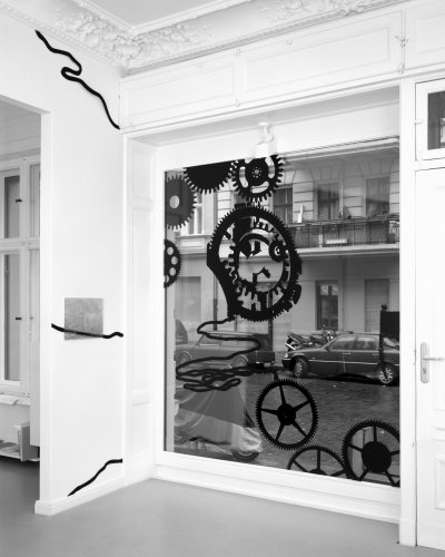 2007, Vinylfolie auf Glas, C-Print, Papier Cutout, Marker, Installationsansicht.
